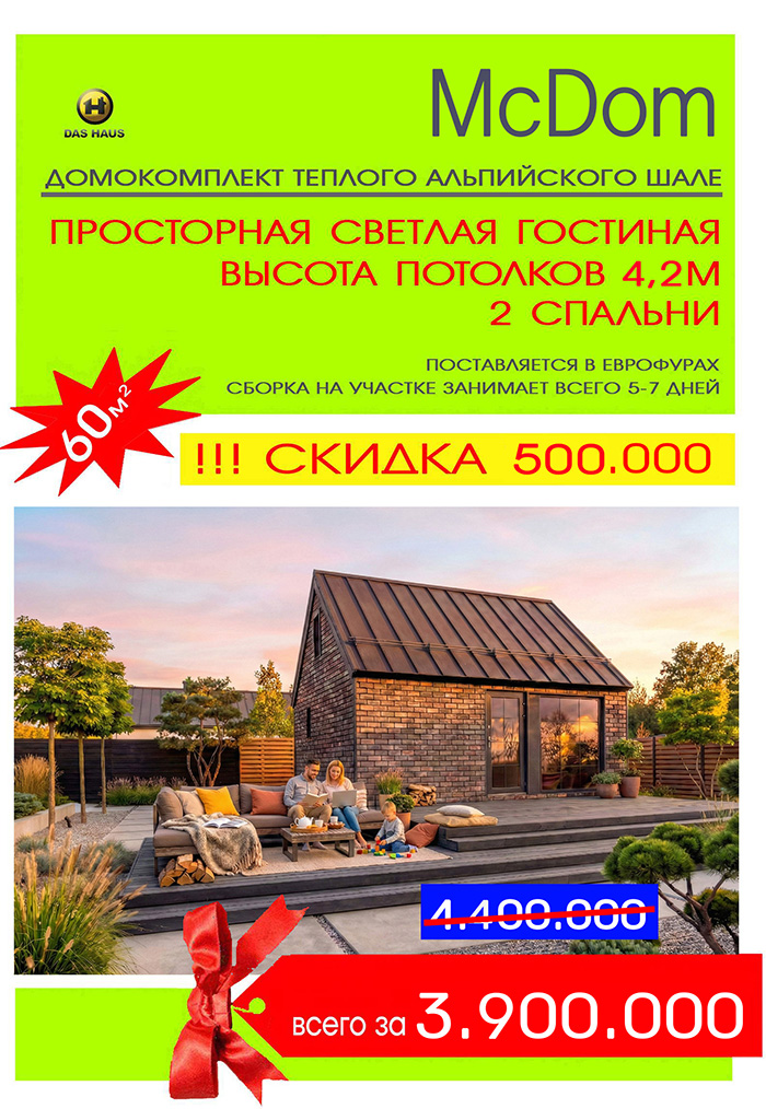 ДОМ ПРОИЗВОДИТСЯ НА КОНВЕЙЕРЕ И СОБИРАЕТСЯ ВСЕГО ЗА НЕСКОЛЬКО ДНЕЙ НА ВАШЕМ УЧАСТКЕ